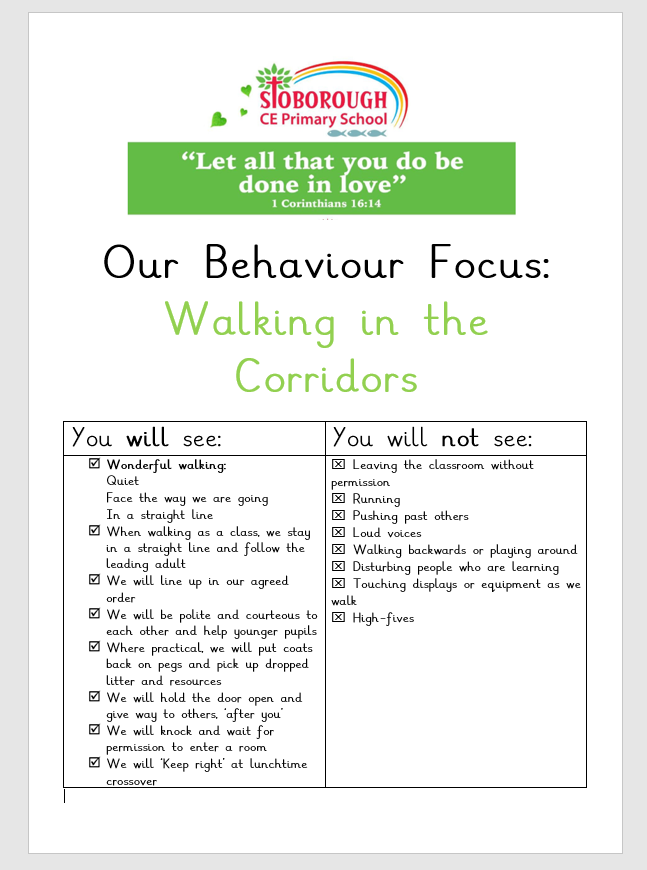 So far this year, we have focused on teaching our pupils our expectations in the following areas: