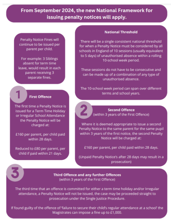 The table below shows our approach to dealing with attendance that falls below the expected level.